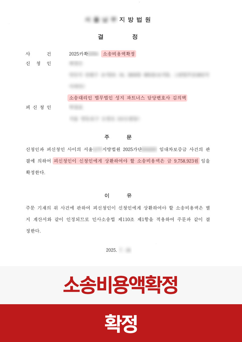 의뢰인은 이전 민사소송에서 승소했지만 판결만으로는 상대방에게 소송비용을 바로 청구할 수 없었습니다. 실제로 어떤 비용이 인정되고 총액이 얼마인지가 확정되어야만 상대방에게 지급을 요구할 수 있기 때문입니다. 상대방이 비용 지급 의사를 보이지 않는 상황에서 의뢰인은 소송비용을 명확히 산정해 법적 근거를 갖추기 위해 소송비용확정신청을 진행하게 되었습니다.