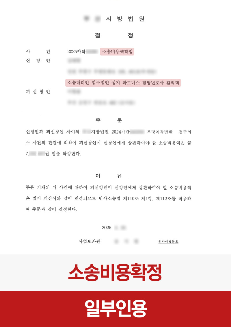 또한, 원고 측의 부당이득반환 청구가 법적 근거를 결여하고 있다는 점을 강조하며 소송 단계에서 기각 판결을 이끌어냈습니다. 이어 소송비용액 확정 절차에서는 승소 확정 판결을 토대로 세부 비용 산정 자료를 제출하여 상대방으로부터 소송비용을 상환받는 결정을 받아냈습니다.