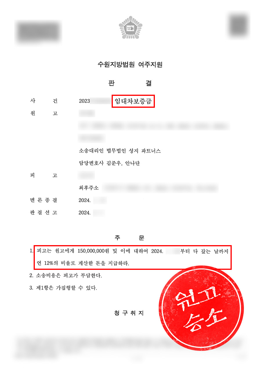 임차보증금 반환하지 않은 임대인에게 소송을 제기한 사례