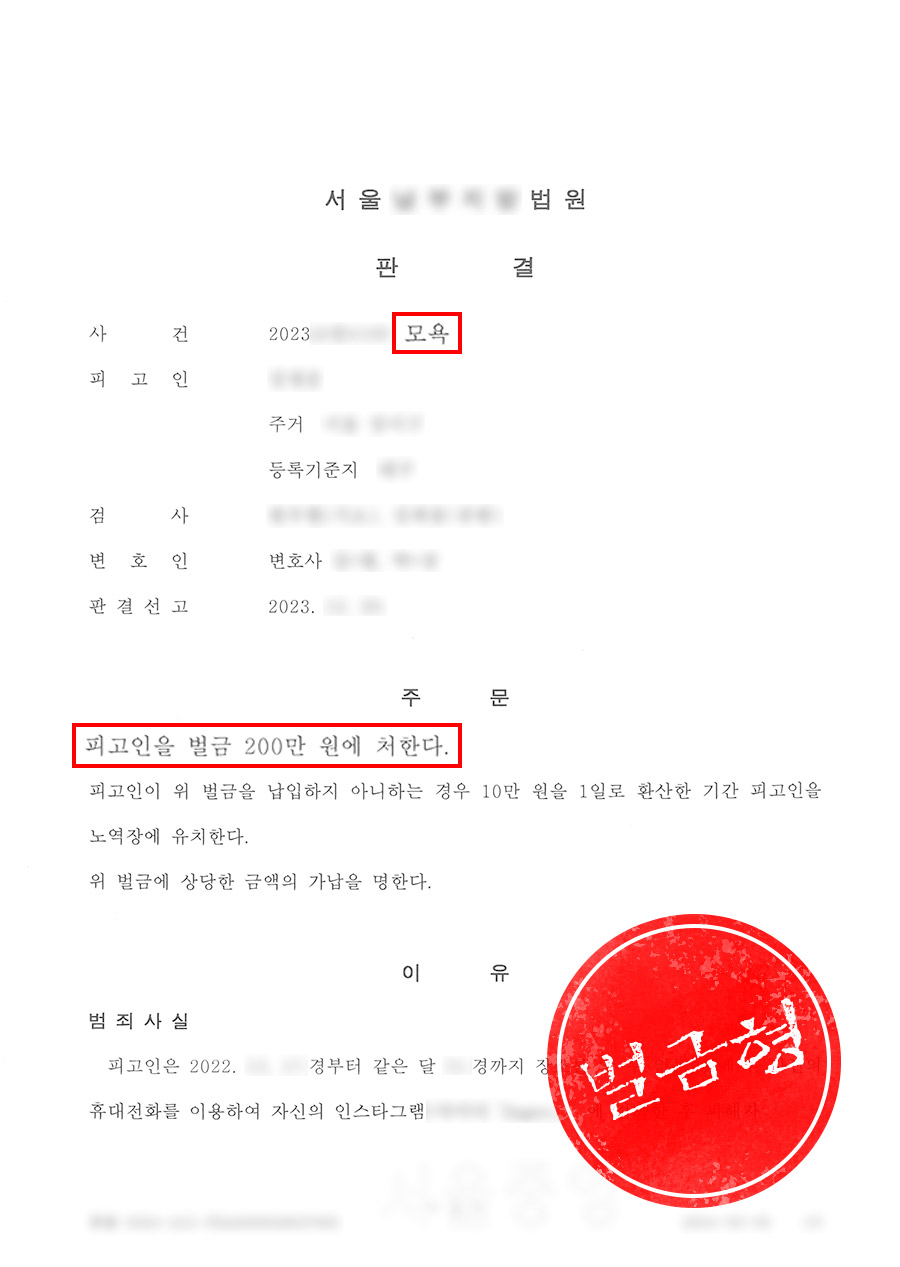 [고소대리-모욕] 인스타그램에서 공개적으로 모욕하여 고소한 사례
