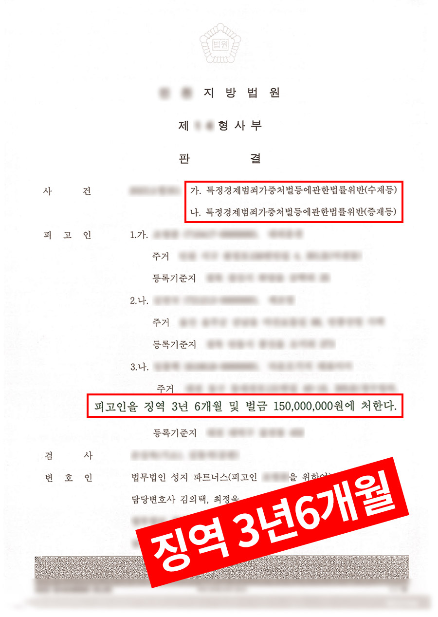 의뢰인의 수수액이 1억원 이상인 경우 가중처벌이 되어 무기징역 또는 10년 이상의 유기 징역에 처할 수 있었습니다.
