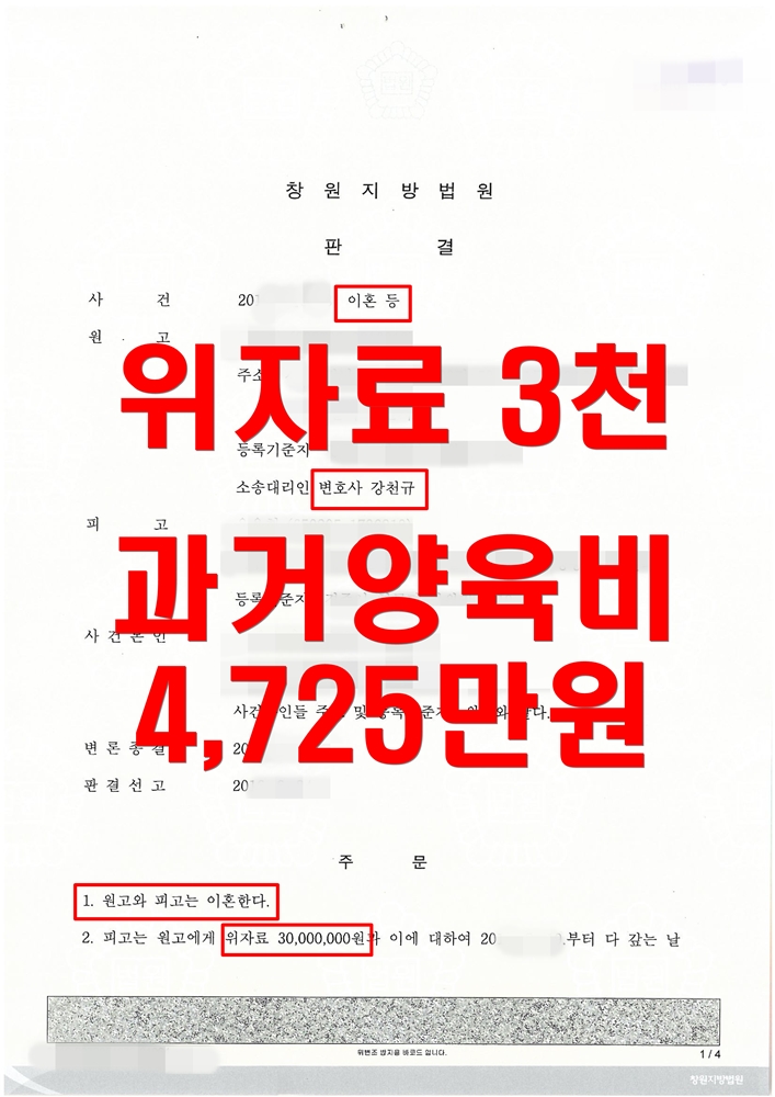 재판부에서도 담당변호사의 주장에 수긍하여 과거양육비 4725만원을 지급하도록 명하였습니다.