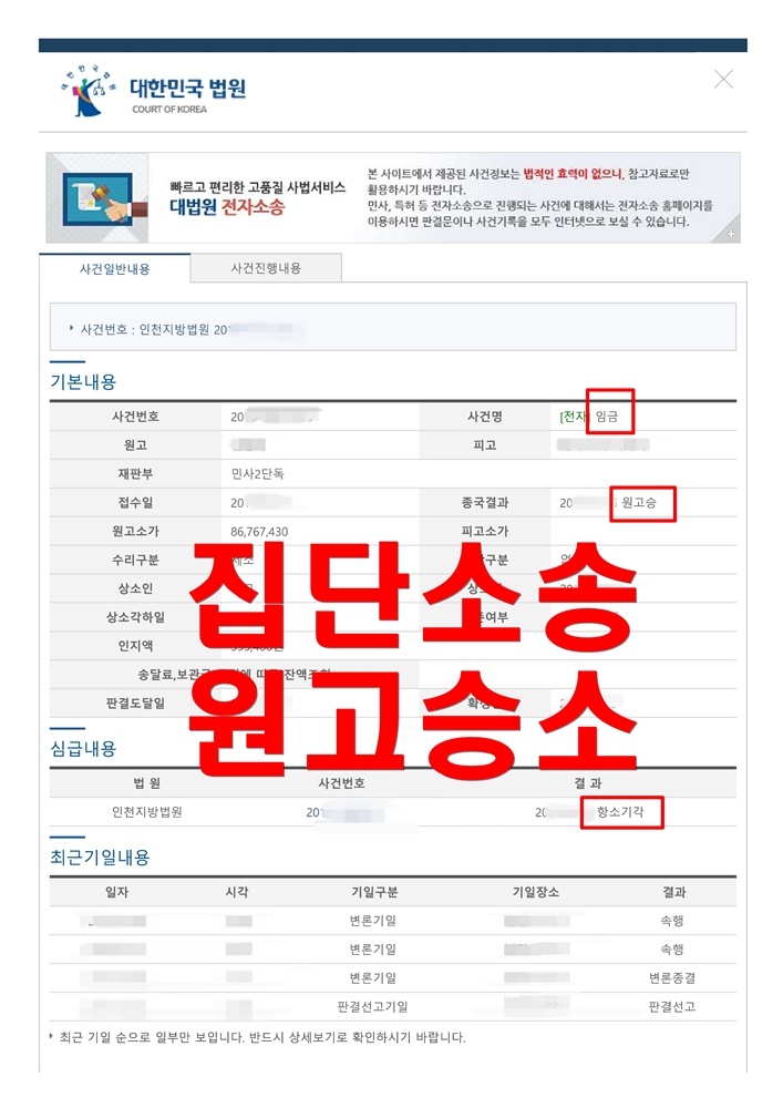이러한 어려움에 반하여 근로자 개인이 받게 되는 승소금액은 몇백만원 수준이어서 개별적으로 소송을 제기하는 것은 사실상 불가능한 것이 사실입니다.