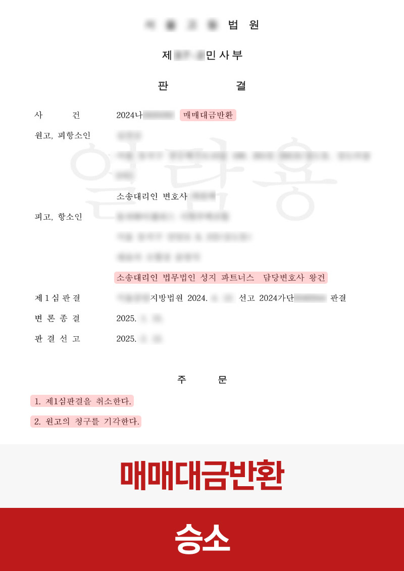 지역주택조합 매매대금반환 청구, 피고 전부승소