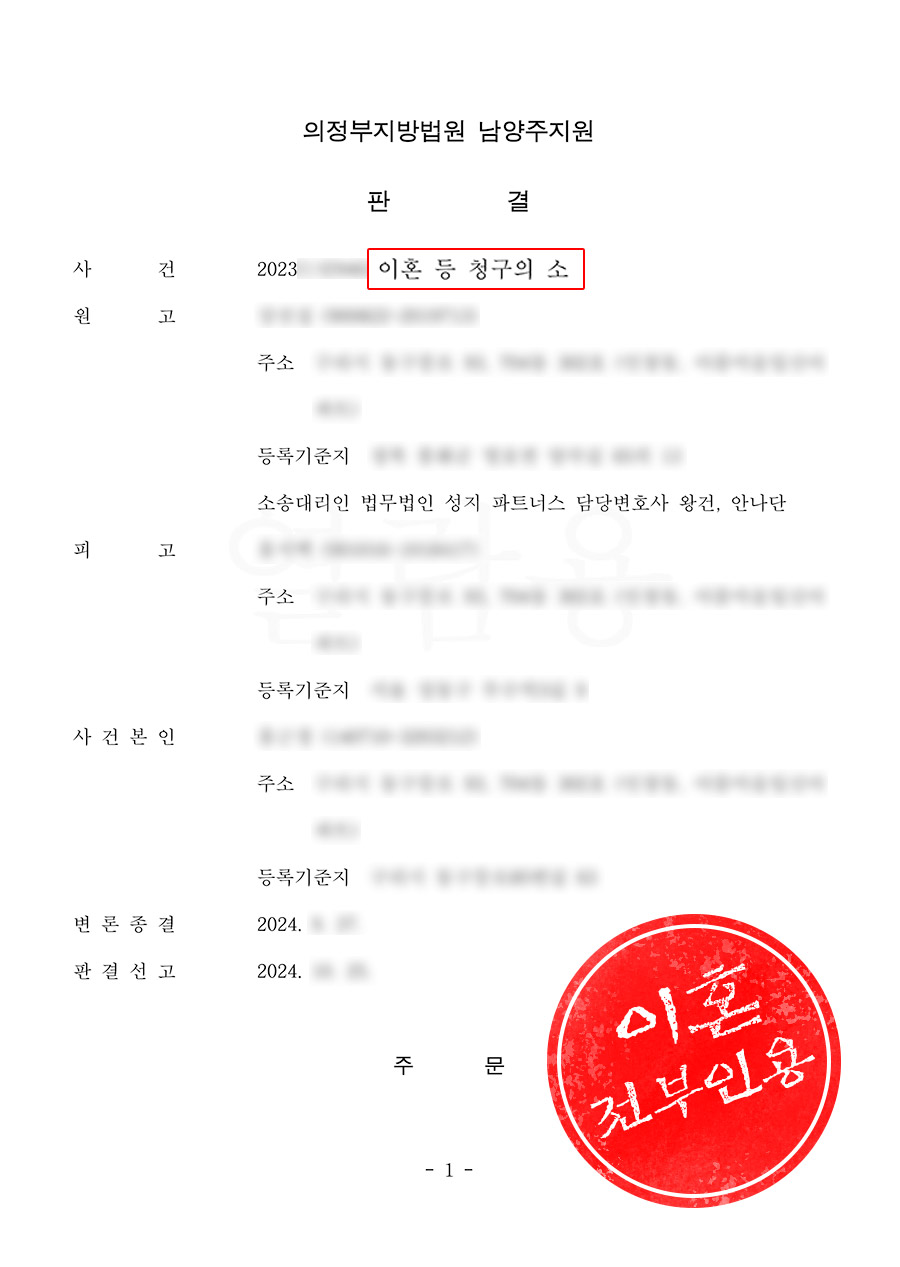 - 이전글무시 일삼은 배우자와 이혼 및 재산분할로 6억 받아 내 24.11.29